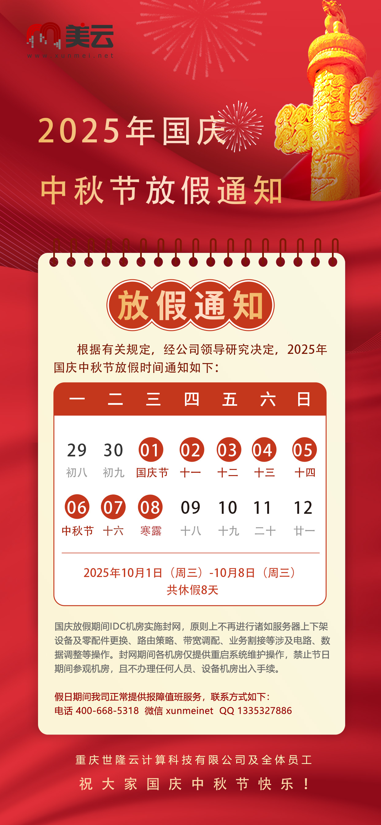 重庆世隆云计算科技有限公司及全体员工,祝大家国庆中秋节快乐!
